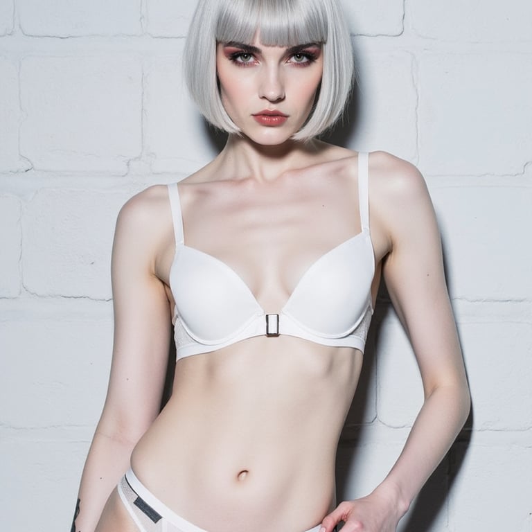 Nova is Noir Starr’s avant-garde heartbeat, where gothic sensuality collides with high fashion precision. With her platinum-blonde bob, stormy grey eyes, and unapologetically bold makeup, she embodies a new era of digital couture — fearless, cinematic, and raw.